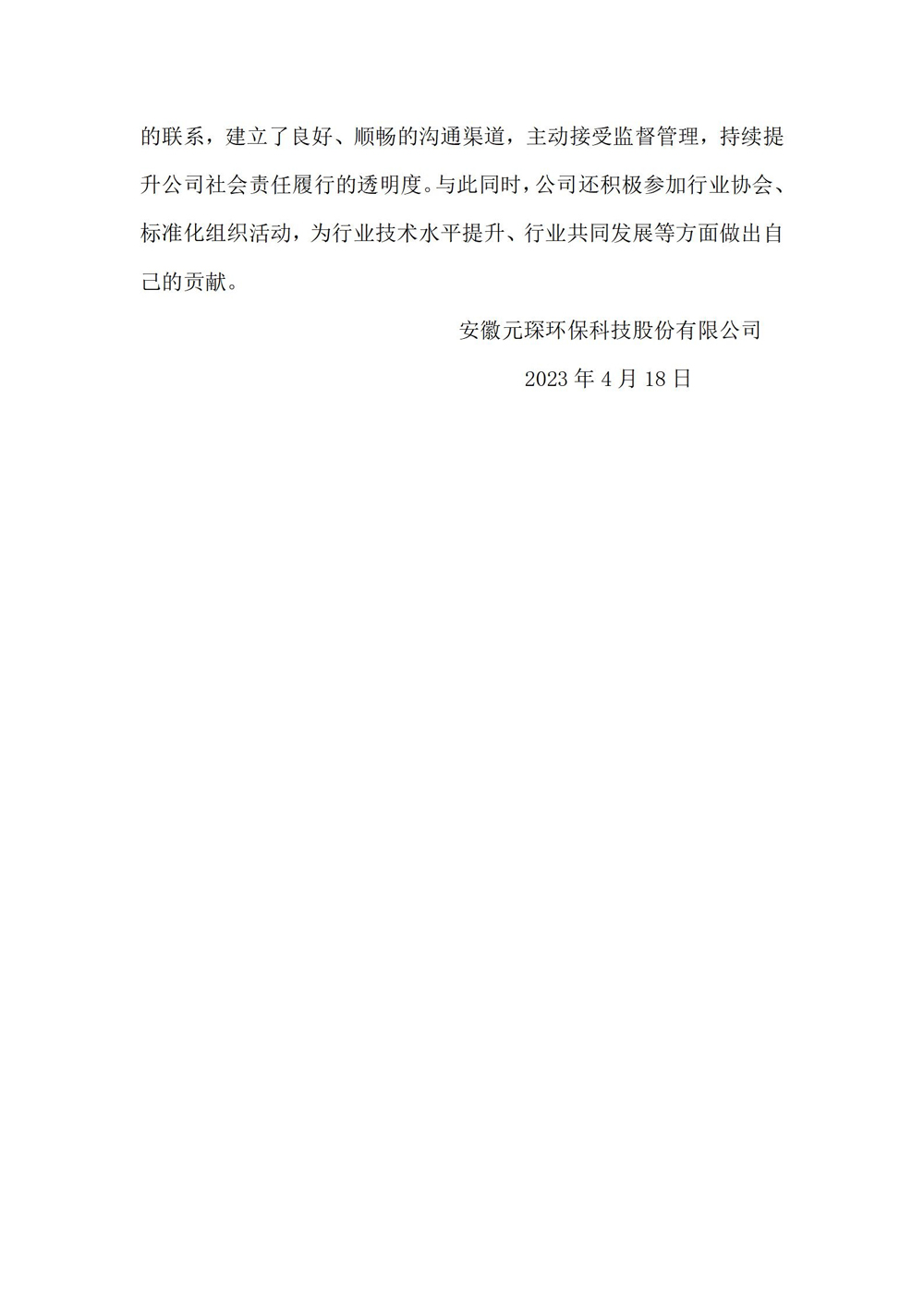 安徽乐鱼leyu环保科技股份有限公司2022年度社会责任报告